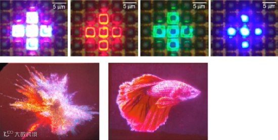 单片全彩MicroLED是业内长期以来所追求研发的方向,如部分初创企业所使用量子点(QD)进行色彩转换从而实现彩色化MicroLED,但是这种色彩转换方法的最大亮度和器件寿命都有很大限制,原因是量子点寿命会随着激发光通量密度和MicroLED结温的增加而显著降低。其他基于外延的三色集成技术,如多色外延层、选择性区域外延、再生长、纳米结构和3D结构等技术路径,尚未能有像素间距小于10um的原型展示。
