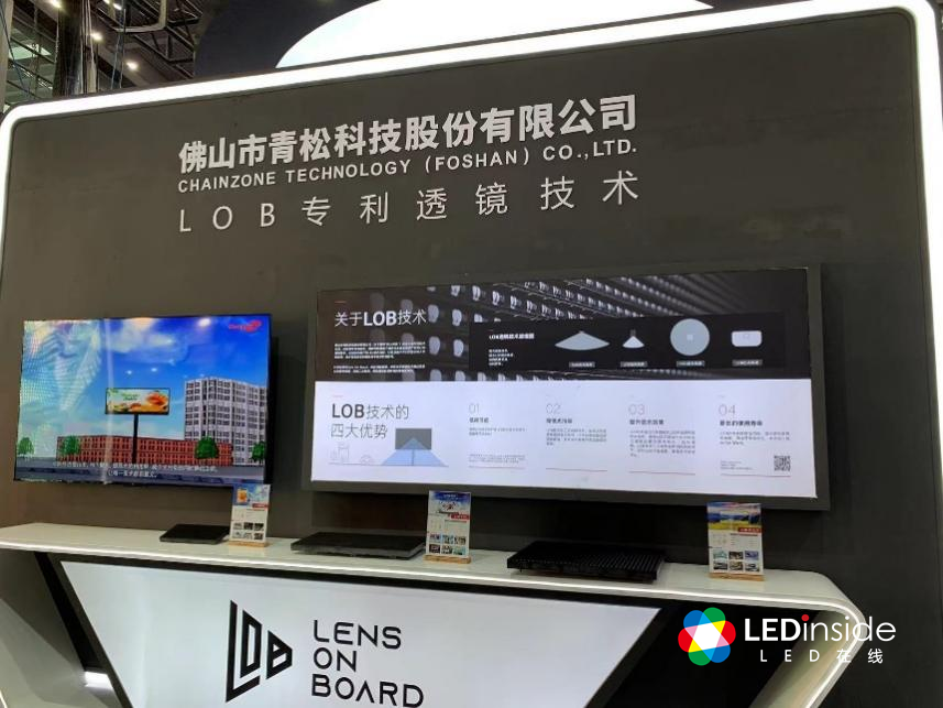 佛山青松重点展示了基于LOB(Lens On Board)技术打造的户外显示系列,包括P16.9、P10、P8间距产品,具有低功耗、低光污染、高显示效果、长使用寿命等特点。