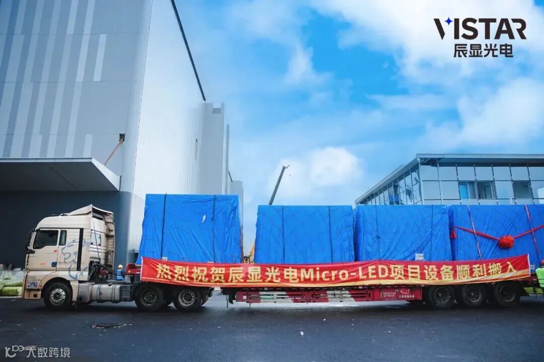 随着设备搬入的礼炮声响起,一辆辆装载着Micro-LED设备的卡车缓缓驶入厂房。值得一提的是,