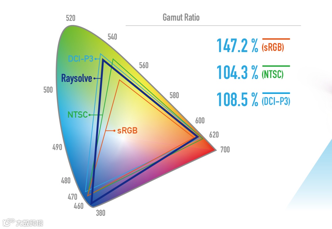 此外,镭昱自研的光刻式量子点制程(QDPR)进一步优化,实现了更广色域及更优色彩表现。经实测数据显示,镭昱全彩微显示屏的sRGB色域比例由133%提升至147.2%,NTSC色域比例由94.2%提升至104.3%,DCI-P3色域比例由98.1%提升至108.5%。色彩丰富度的提高意味着可以为用户呈现更为逼真的显示画面,增强虚拟内容的表现力,实现现实世界与虚拟信息的无缝衔接,带来更为沉浸式的AR体验。