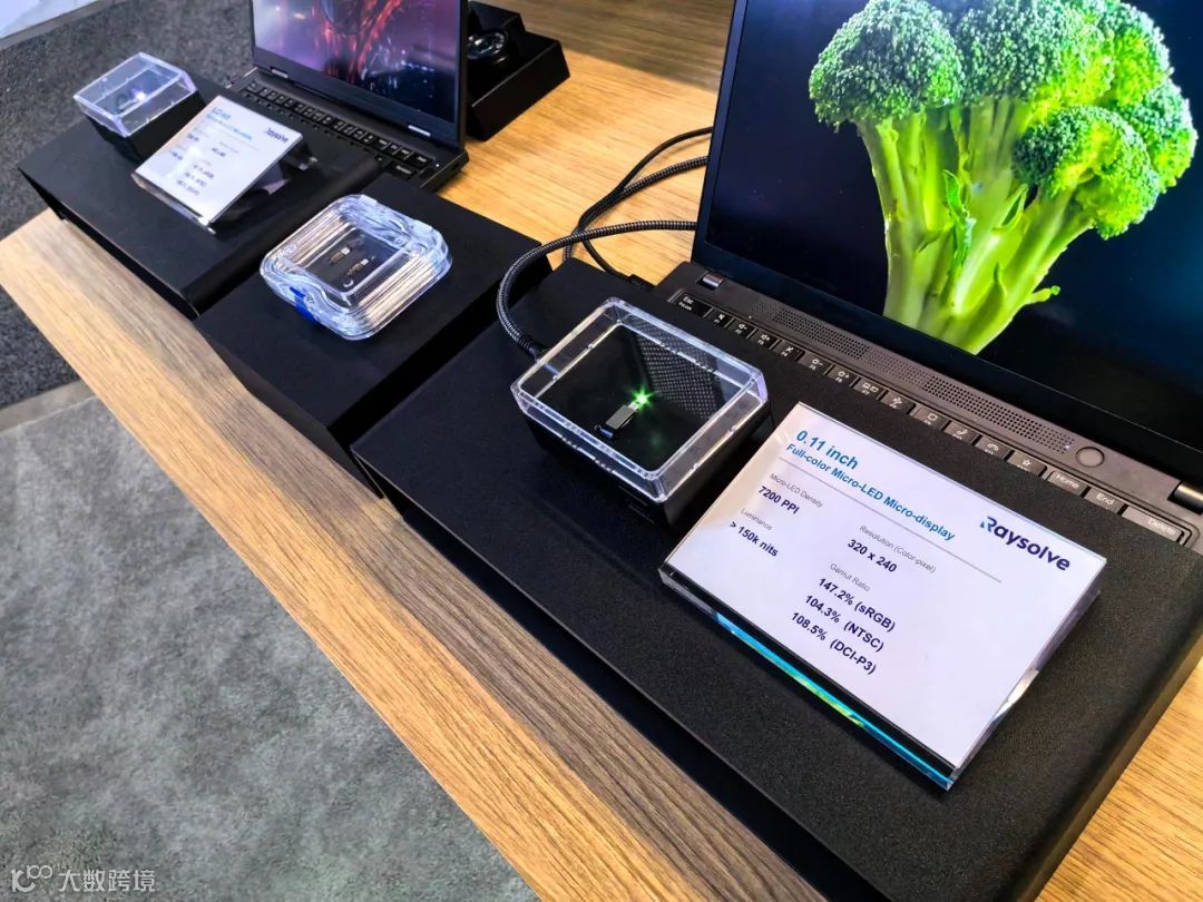 致力于AR级别单片全彩Micro LED微显示芯片开发的企业镭昱,今年首次登陆CES,展出的0.11英寸和0.22英寸全彩Micro LED微显示屏在关键性能方面实现了全新升级,并展示了双目全彩光波导模组。
