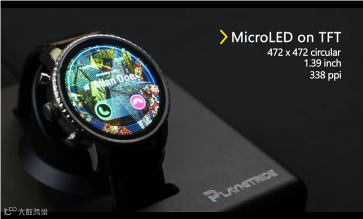 1.39英寸圆形可穿戴Micro LED显示器是与友达共同研发的成果,采用薄膜晶体管TFT技术,338 PPI。