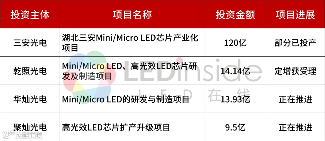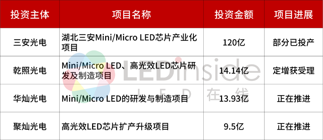 本次募投项目建成后将合计新增Mini LED BLU、Mini LED GB、Micro LED 芯片、高光效LED芯片年产能636万片。