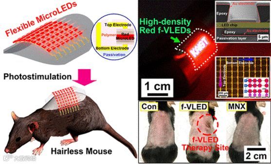 KAIST指出,Micro LED不会升温到损害人体的皮肤,并且与传统的光疗激光器相比,每单位面积的能耗只是其千分之一。该研究成果可以为治疗人类落发提供一个新的方法。