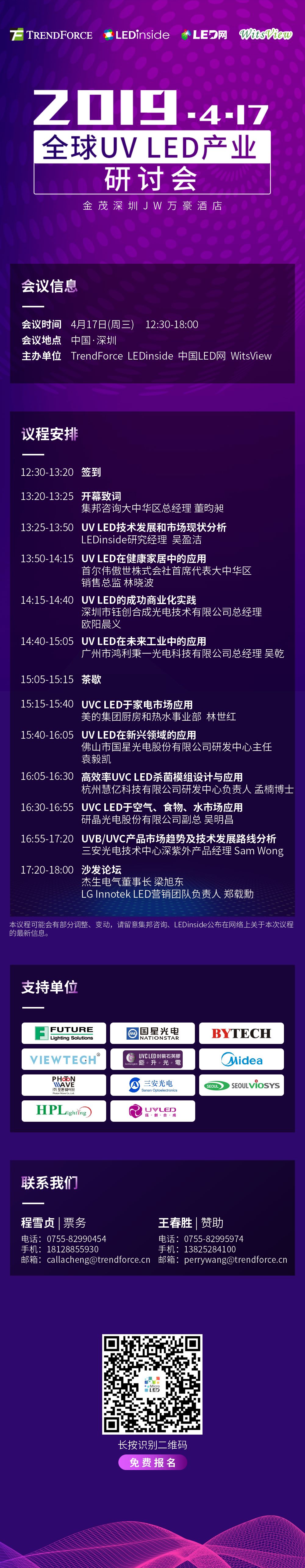 一周后,由集邦咨询LED研究中心LEDinside主办的2019集邦咨询全球UV LED产业研讨会就要在深圳拉开序幕了!