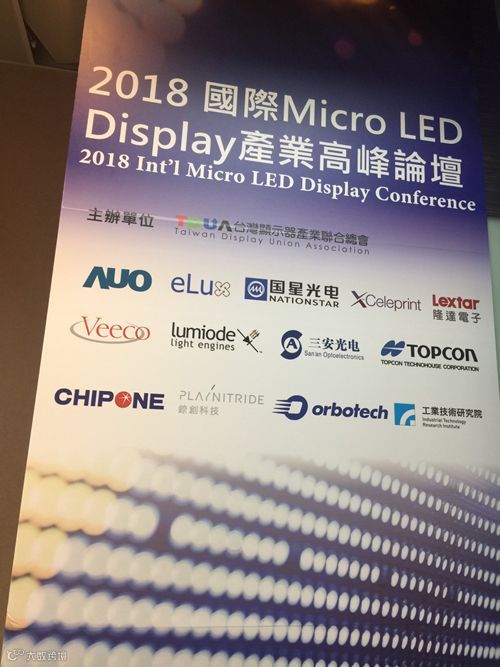 由台湾显示器产业联合总会(TDUA)主办的2018国际Micro LED Display产业高峰论坛,结合了「Touch Taiwan 2018」智慧显示与触控展览会,展区还规划「Micro LED/Mini LED产品方案解决专区」, 针对Micro LED & Mini LED的产品、解决方案、关键零组件、制程材料、生产设备(特别是巨量移转设备)、 AOI检测设备、驱动IC芯片等作主题展出。