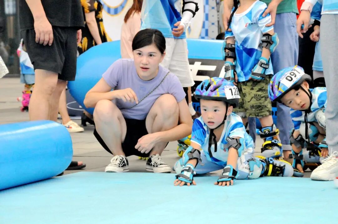 轮滑小将们在家长的全程陪同与协助下完成比赛,不仅增强了亲子感情,还培养了孩子们的团队合作意识。