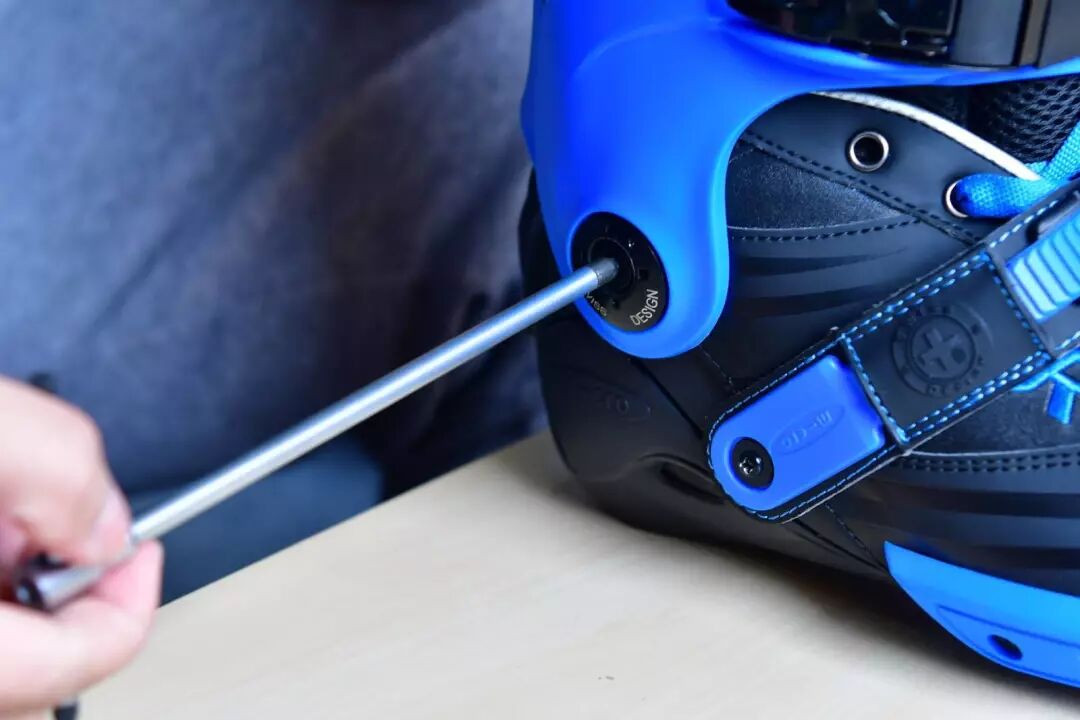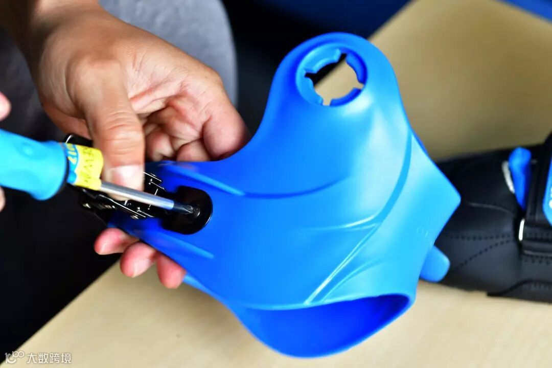然后我们再看看上鞋,留意到上图的七个孔没,使用者可根据自己与用力习惯对刀架进行微调: