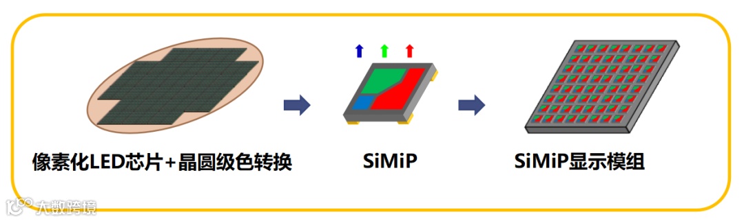 立琻半导体基于自有的硅基GaN高效Micro-LED技术基础,瞄准高性价比的微间距LED大屏直显应用需求,自主研发了单芯全彩化SiMiP显示芯片技术。SiMiP是一种高阶MiP技术,通过单芯集成红绿蓝三基色像元,无需复杂的巨量转移和修复工艺,只需一次固晶即可将芯片转移到驱动背板上。该技术可大幅提高微间距LED显示模组生产的直通良率,显著降低生产成本,兼具高性能与低成本的优势,为微间距LED大屏直显应用提供了更具竞争力的解决方案。