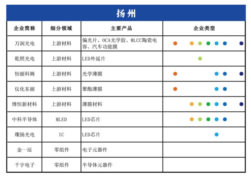 ▲扬州新型显示材料/元器件企业 来源:江苏省新型显示产业发展白皮书(2025)