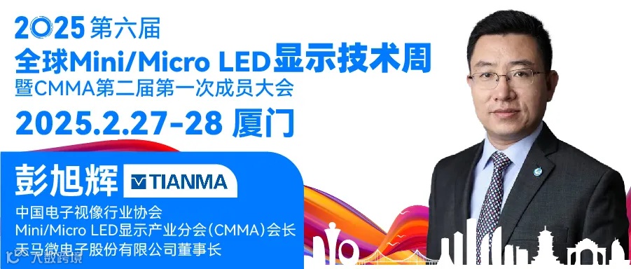 由中国电子视像行业协会指导,中国电子视像行业协会Mini/Micro LED显示产业分会(CMMA)主办,天马微电子股份有限公司联合主办,中国电子视像行业协会智能显示车联网分会、Micro LED生态联盟协办的2025年第六届全球Mini/Micro LED显示技术周暨CMMA第二届第一次成员大会将在2025年2月27日-28日在厦门召开,以“MLED赋能人车家商业全场景”为主题,Mini/Micro LED全产业链企业及行业精英人士共同聚焦MLED产业链迭代发展与应用场景扩大趋势,围绕Micro LED直显电视发展态势、Mini/Micro LED车载显示及照明加速渗透以及Micro LED微显示与AR等方向,探索MLED在消费电子、智能出行、家居生活与商用展示等多维度的最新成果与未来潜力,推动MLED商业化进程,加速MLED产业链迭代,助力中国Mini/Micro LED产业突破发展。