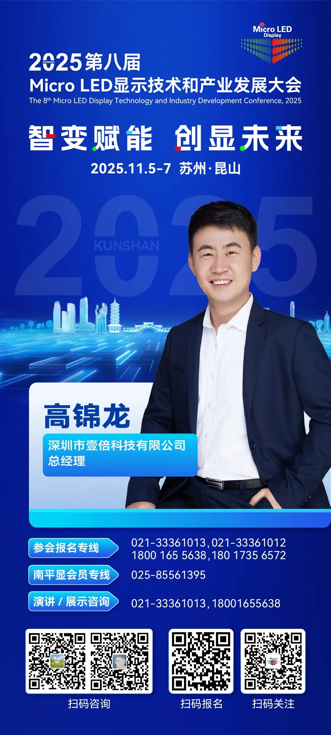 作为 Micro LED 显示领域年度核心盛会,2025第八届Micro LED显示技术和产业发展大会将于2025年11月5日至7日在苏州昆山时代皇冠假日酒店举行。本次论坛以“智变赋能 创显未来”为主题,聚焦量产化关键技术攻坚、终端应用场景创新、产业生态协同共生三大方向,搭建“产学研投用”一体化对接平台,共同探讨Micro LED关键技术突破,洞悉市场发展趋势和终端应用场景,助力产业高质量发展。