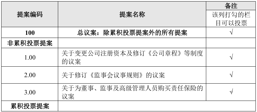 2、提案1、提案2以特别决议方式表决,须经出席股东大会的股东(包括股东代理人)所持有效表决权的三分之二以上通过。提案4、提案5、提案6需以累积投票方式表决,非独立董事和独立董事分别采用累积投票方式选举产生。