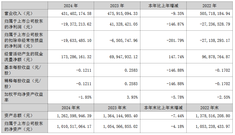 报告显示,久量股份2024年营业收入为4.31亿元,同比下降9.35%;归母净利润为-1937.22万元,同比下降146.87%;扣非归母净利润为-1963.35万元,同比下降201.79%。