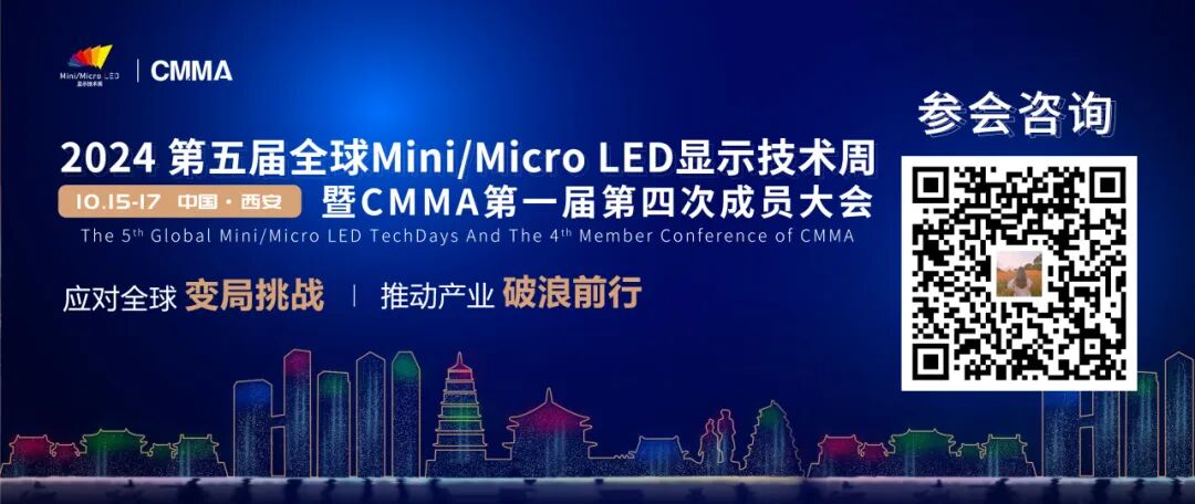 为应对全球经济发展机遇与风险、助推产业链协同合作和规模化发展,由中国电子视像协会指导,中国电子视像协会Mini/Micro LED显示产业分会(CMMA)主办,利亚德集团和西安诺瓦星云科技股份有限公司协办的2024第五届全球Mini/Micro LED显示技术周暨CMMA第一届第四次成员大会将于2024年10月15日-17日在西安举办。