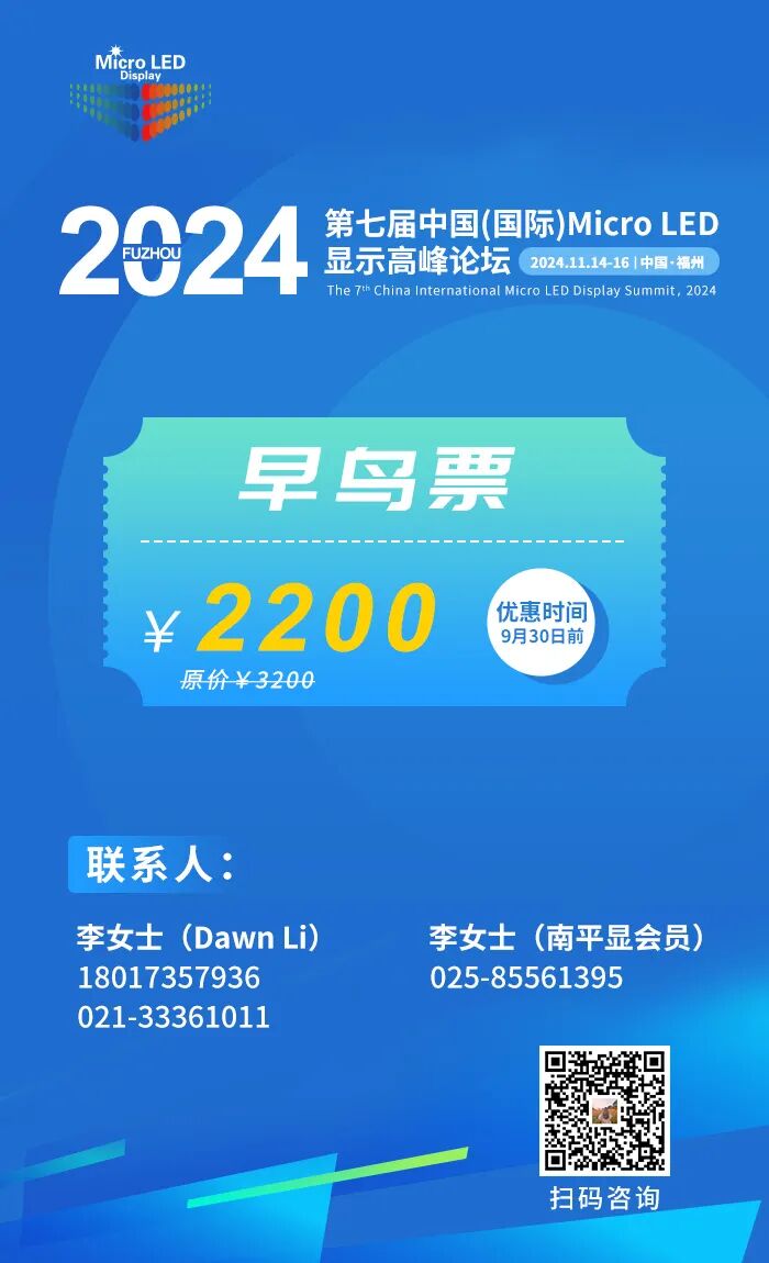 面对机遇和挑战,2024第七届中国(国际)Micro LED显示高峰论坛将于2024年11月14日至16日在福州召开,本次论坛以“创新驱动 新质之光”为主题,通过探讨Micro LED量产突破和降本增效,洞悉最新前沿技术和应用场景,助力产业高质量发展。