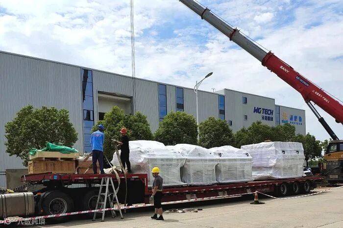 继2023年11月完成主体厂房封顶后,沃格光电投资的湖北通格微电路科技有限公司规划投建的年产10万平方米芯片板级封装载板一期项目首条设备线迎来了进场安装。此次进场的设备是通格微整条PVD镀膜线,由多台高端机器设备组成,属于通格微和设备供应商联合定制开发,组装完成后长达40多米。