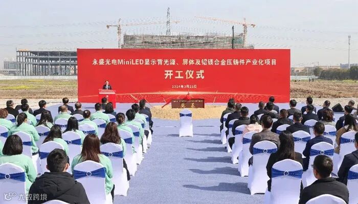 该项目于3月21日在江苏泰州靖江市城北园区开工。项目计划总投资35亿元,项目达产后,预计可形成年产Mini LED背光源600万片、传统型LED背光源1500万片、镁合金压铸件15000吨、铝合金压铸件5000吨的生产能力,可实现年新增开票销售45亿元。