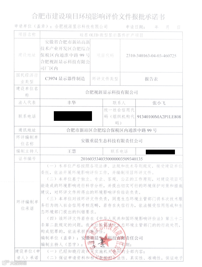 目前该厂区现有工程包含已建成的“OLED 微型显示器件项目”和“OLED 微型显示器件项目配套基础设施扩建项目”,设计规模为 2000 万块/年硅基显示模组,产品规格为 0.2X"、0.3X"、0.4X"和 1.0X"。