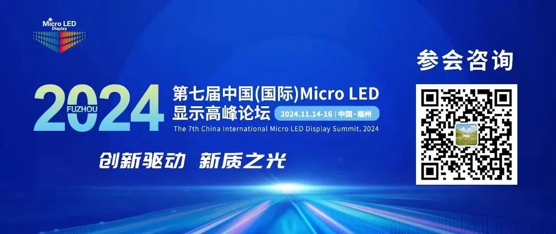 以“创新驱动 新质之光”为主题,2024第七届中国(国际)Micro LED显示高峰论坛将于2024年11月14日至16日在福州召开,本届论坛集结洲明科技、BOE、天马微电子、友达光电、錼创科技、辰显光电、思坦科技、东丽、晶彩科技等Micro LED产业生态标杆企业的高层领导嘉宾,从Micro LED 全彩化、单片集成、垂直堆叠、巨量转移、玻璃基、宽禁带半导体材料与光电子器件等热门话题入手,围绕产业热点梳理国家创新战略导向、产业发展脉络,展示前沿学科发展方向及科研成果,探索Micro LED显示技术量产化和商业化路径,解读 Micro LED市场风向。