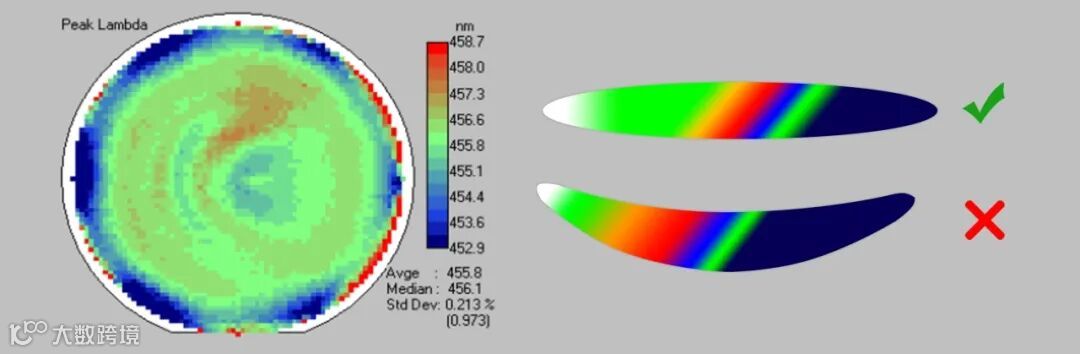 Micro-LED另一个重要应用方向是万级像素矩阵车灯和车载HUD,这两个应用都需要超大的工作电流密度,晶能光电针对这个应用开发的蓝光Micro-LED外延结构,在1000A/cm2下能够实现20%以上的外量子效率,为矩阵车灯和车载HUD应用奠定了基础。