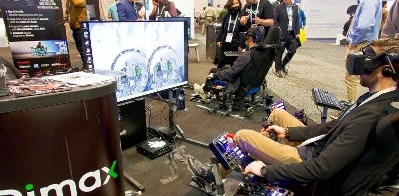 在小派科技的展位上还有两款神秘的展品被「藏」在了一个单独的小房间中, 其中一款是采用了60G毫米波的Pimax AirLink,用于实现Pimax Crystal和PC间的无线串流;另一款则是仅有全球受邀媒体和行业大V才能体验的Pimax 12K最新EVT0原型机。
