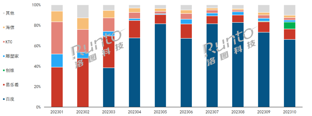 前10个月累计的销量来看,百度凭借先发优势位居移动智慧屏市场第一的位置,在线上市场的销量份额超过70%。