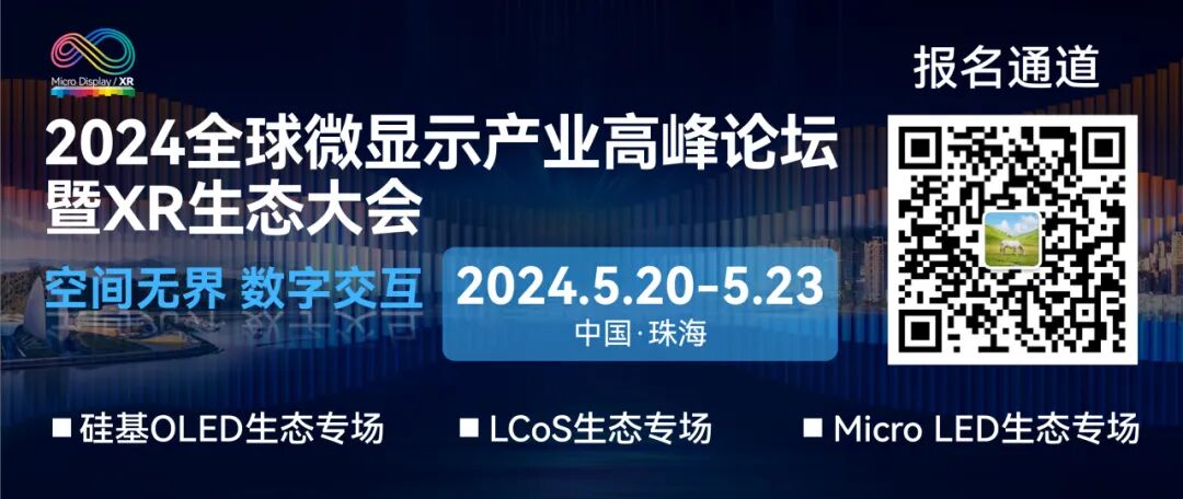 2024全球微显示产业高峰论坛暨XR生态大会将于2024年5月20-23日在珠海盛大开幕,届时大会将设置硅基OLED生态专场论坛,全球微显示产业院士专家、XR企业高层齐聚一堂,围绕硅基OLED全产业链热点议题,分享最新技术研究成果,推动相关产业实现高质量、高效率、可持续发展,助力微显示及XR应用实现越级突破。