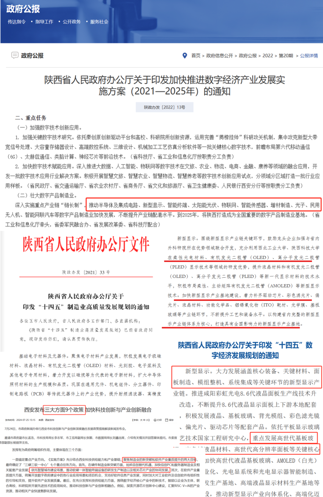 在新型显示方面,陕西省及西安市政府都针对数字经济、新型显示领域关键设备制造、液晶材料、OLED材料等方面,做出了相应的政策扶持和措施。