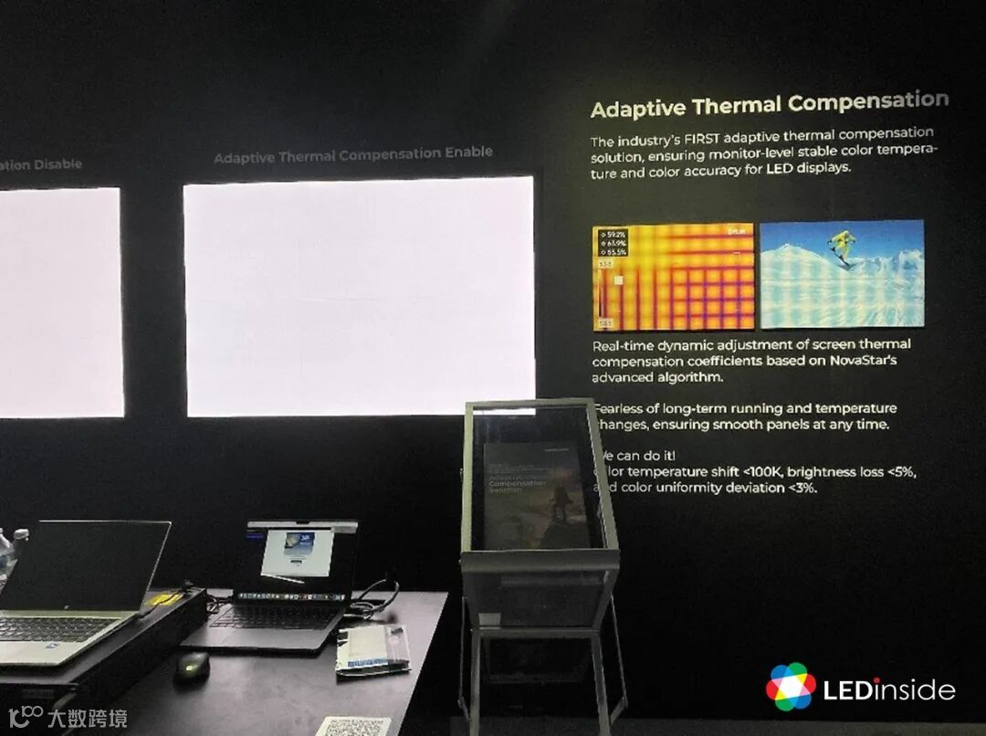 自适应热力补偿解决(Adaptive Thermal Compensation):精准控制LED屏色温色准,实时推算箱体热力特性变化,动态调整热力补偿系数,有效解决因为屏体空间位置不同、温度分布不均导致的色温偏差、红色条纹,以及箱体内部电源和IC位置导致的发青问题,保障箱体颜色、色温始终能够精准呈现。