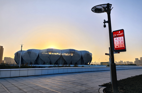 其中,利亚德为黄龙体育中心体育场打造南北双塔看台屏,及双环屏,全新场馆配置带来更好的场地体验。双环屏上环全长约590米,下环全长约490米,两道环屏面积加起来超过1000平方米。