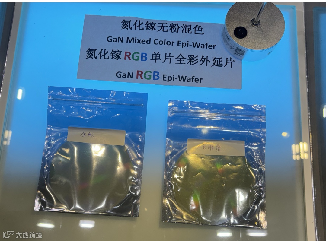 庞纳微展示了单片全彩外延片、氮化镓混色光、红黄光外延片及应用。