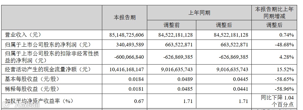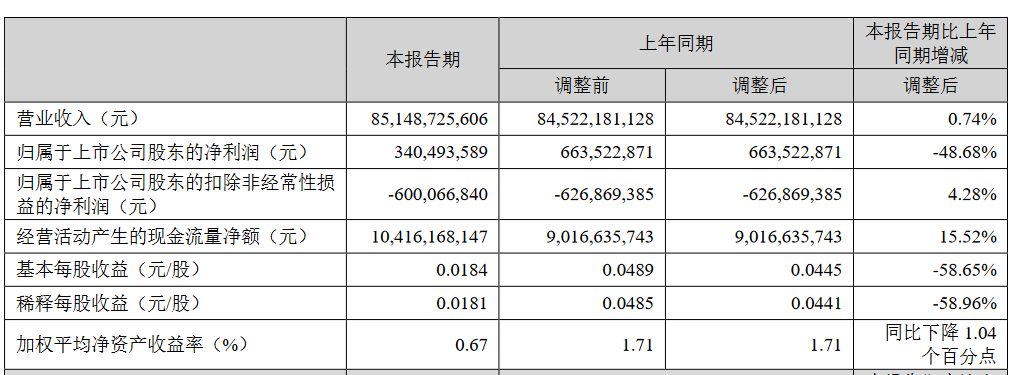 TCL科技8月29日晚披露中报,公司上半年实现营收851.5亿元,同比0.7%,净利润 23.9亿元,同比增长24.1%,其中二季度盈利大幅改善,实现归母净利润8.9亿元,同比环比均实现扭亏为盈,分别增加15.8、14.4亿元。