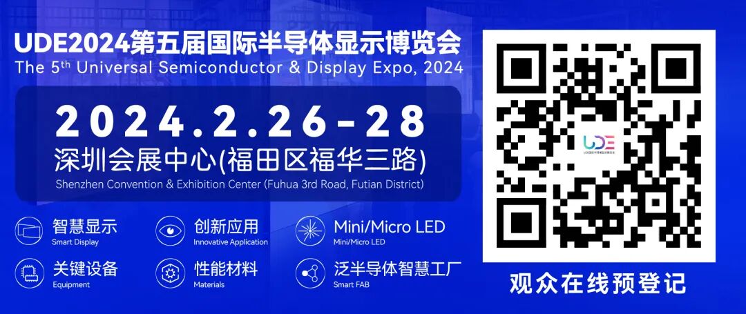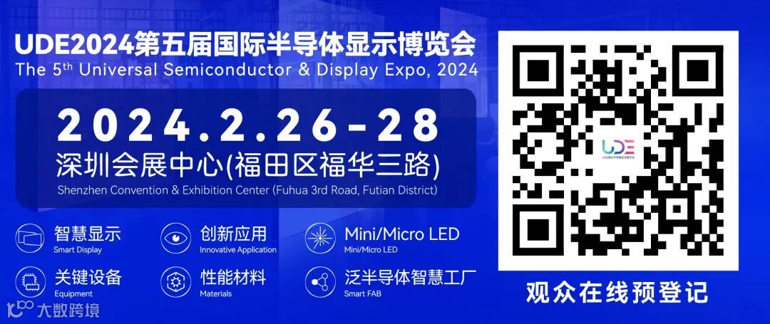 由中国电子视像行业协会指导、上海舜联会展有限公司主办的UDE2024第五届国际半导体显示博览会(简称:UDE2024)吹响半导体显示产业开年大展的号角,将于2024年2月26-28日深圳福田会展中心拉开帷幕,新年伊始,提前把握国内外商机。