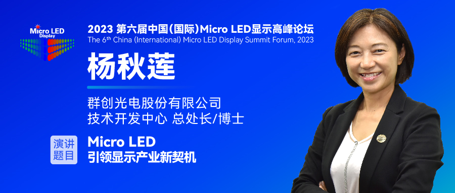 本次论坛的主讲嘉宾群创光电首席技术官杨秋莲博士将从高质量视觉盛宴的角度为业界分享Micro LED技术的发展。更多精彩演讲内容,欢迎各位莅临现场聆听。