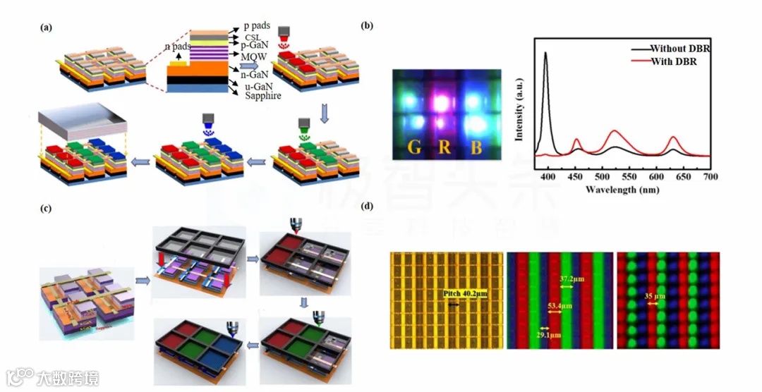 转移打印技术已被许多公司广泛使用,但是成本和产量是该技术发展的主要障碍。颜色转换技术可实现低成本和高PPI的Micro LED显示全彩化。然而,材料的能量损失、低效率和不稳定性仍然是需要进一步地解决。