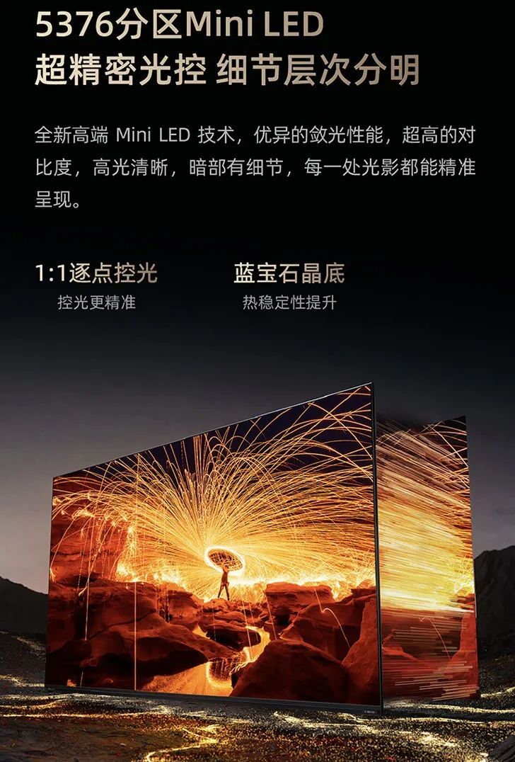 据介绍,这款电视号称搭载 3840x2160 分辨率 144Hz(可超频至 288Hz)“黑曜屏 Pro”,75 英寸版拥有 4000 分区 / 85 英寸版拥有 5376 分区,峰值亮度 5800 尼特,覆盖 90% BT.2020、98% DCI-P3 色域。