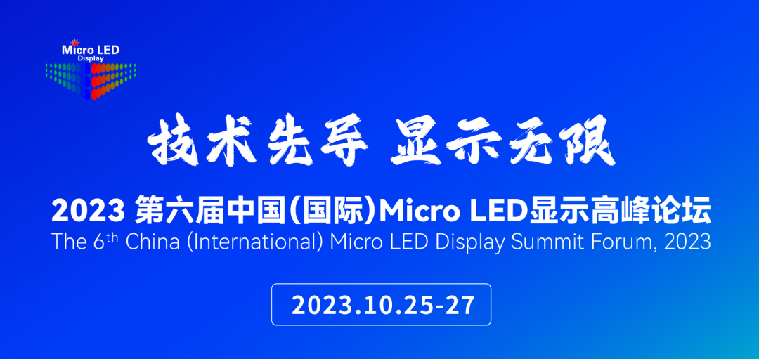 2023第六届中国(国际)Micro LED技术显示高峰论坛由南京平板显示行业协会、中国光学光电子行业协会液晶分会、中国半导体照明/LED产业与应用联盟、中国电子材料行业协会、台湾显示器产业联合总会主办,中国半导体行业协会、中国电子视像行业协会Mini/Micro LED显示产业分会协办,上海舜联投资管理有限公司承办,论坛将于2023年10月25日至27日在中国新余市召开,本次论坛以“技术先导 显示无限”为主题,通过对技术路线的回顾和展望,聚焦Micro LED量产关键技术突破和产业链建设,展示最新技术和相应产品、推动和完善产业链安全及配套对接,促进产业链进一步健康发展。