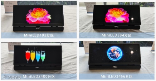 在车载显示方面,惠科展出了一款12.3英寸的Mini LED背光车载屏,拥有百万级超高对比度(1000000:1),并提供多样化的分区选择,从低分区(192、384)到高分区(2400、3456)。