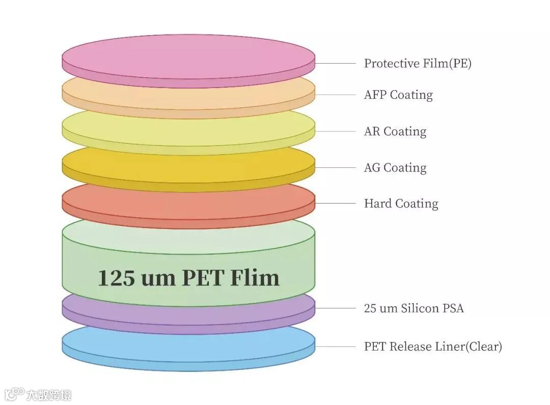 在LCD产业链中,光学膜的上游原材料为PET基膜、溶剂、胶水、粒子以及功能性助剂等。在价格传导上,PET基膜占光学膜产品直接材料成本的70%以上。