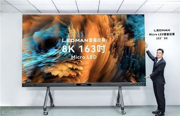 据雷曼光电消息称,雷曼光电110英寸以上超高清显示产品已走进C端市场,其中8K 163英寸Micro LED超高清家庭巨幕产品内含超过100项雷曼自主LED专利。
