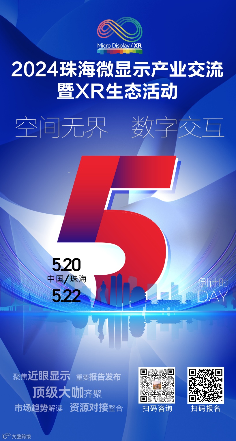 距离2024珠海微显示产业交流暨XR生态活动(“2024全球微显示产业高峰论坛暨XR生态大会”)开幕仅剩五天,截至目前,已有超100+企业报名参会。
