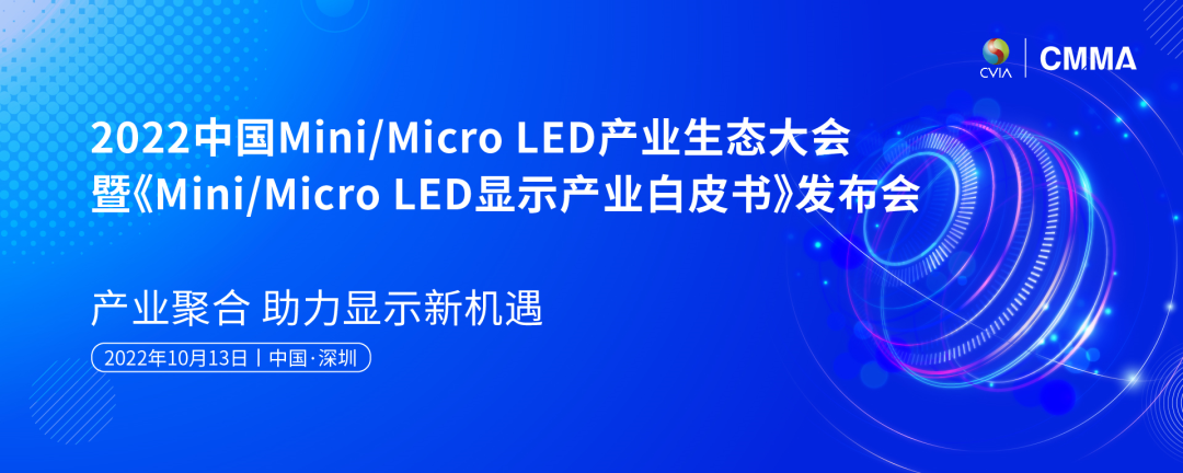 由中国电子视像行业协会Mini/Micro LED显示产业分会(CMMA)主办的“2022中国Mini/Micro LED产业生态大会”将于10月13日在深圳同期召开,大会以“产业聚合 助力显示新机遇”为主题,聚集产业链上中下游企业参会探讨产业生态升级,构筑本土显示产业链安全,解决Mini/Micro LED关键技术瓶颈,扩大量产化需求等热点话题,助力我国新型显示技术发展。