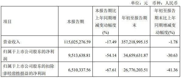 德龙激光第三季度营收为1.15亿元,同比降17.49%,归母净利润为0.09亿元,同比降54.14%。前三季度,德龙激光营收为3.57亿元,同比降1.78%;归母净利润为0.35亿元,同比降30.63%。