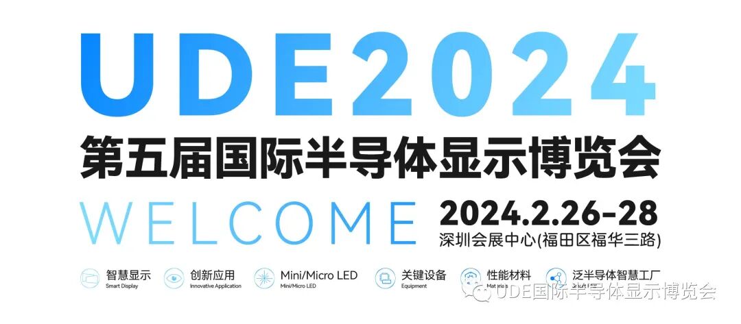 由中国电子视像行业协会指导、上海舜联会展有限公司主办的UDE2024第五届国际半导体显示博览会(简称:UDE2024)吹响半导体显示产业开年大展的号角,将于2024年2月26-28日深圳福田会展中心拉开帷幕,新年伊始,提前把握国内外商机。