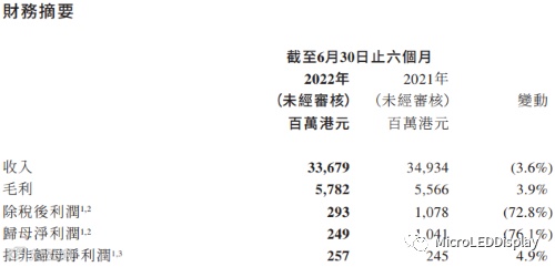 受新冠疫情反复、海外通胀等市场环境因素影响,上半年,TCL电子实现营收336.79亿港元(约合人民币294亿元),同比下降3.6%;归母净利润为2.49亿港元(约合人民币2.17亿元)同比下降76.1%。