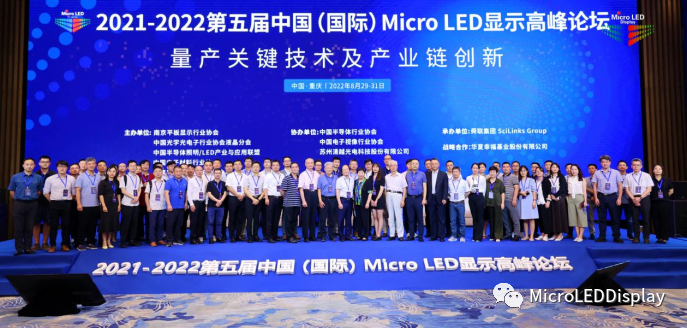 2022年8月29日至31日,由南京平板显示行业协会、中国光学光电子行业协会液晶分会、中国半导体照明/LED产业与应用联盟、中国电子材料行业协会、台湾显示器产业联合总会主办,中国半导体行业协会、中国电子视像行业协会协办,舜联集团SciLinks Group承办,华夏幸福基业股份有限公司战略合作的“2021-2022第五届中国(国际)Micro LED显示高峰论坛“在重庆金科大酒店隆重召开。