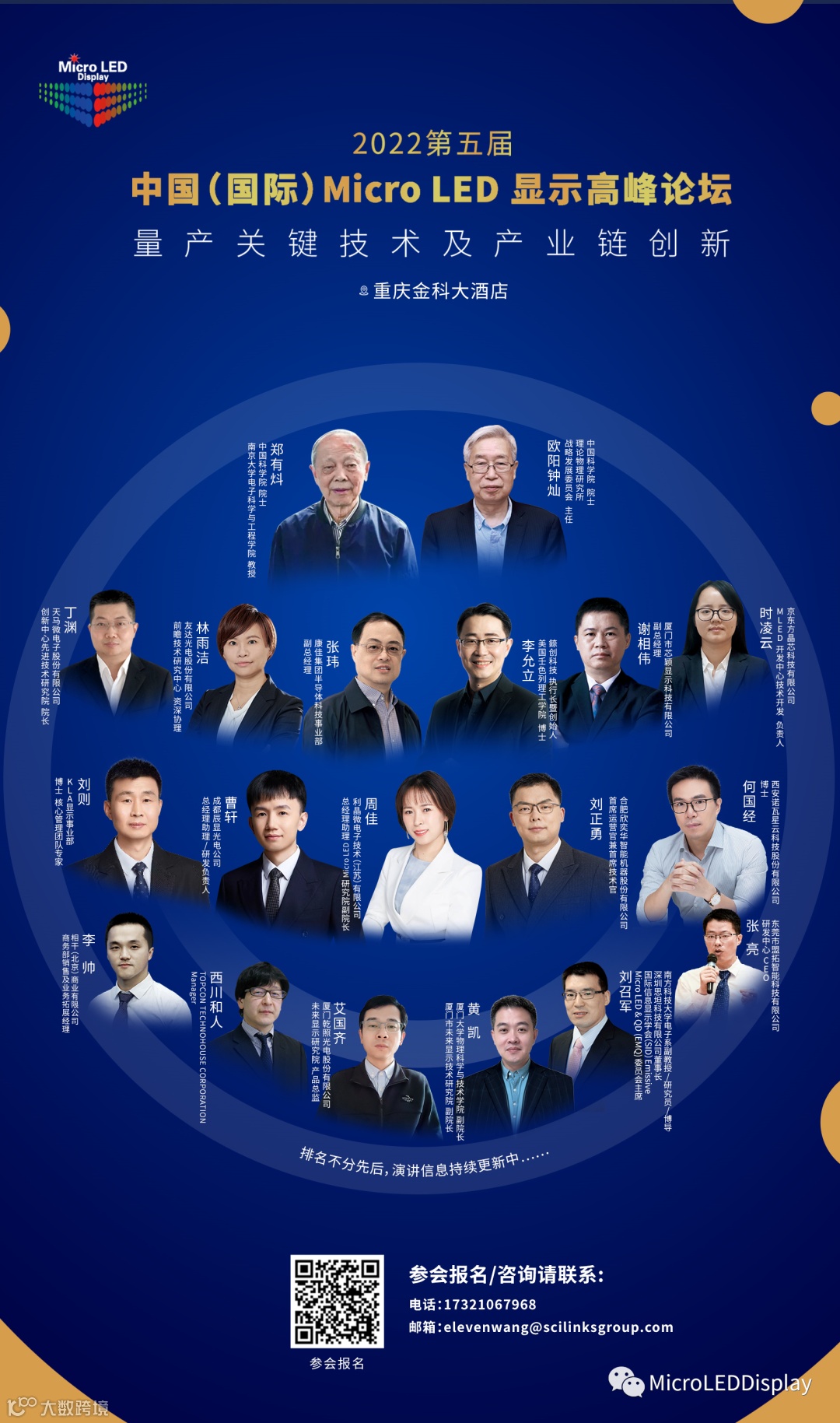 2021-2022第五届中国(国际)Micro LED显示高峰论坛定于2022年8月23-25日在重庆金科大酒店召开。