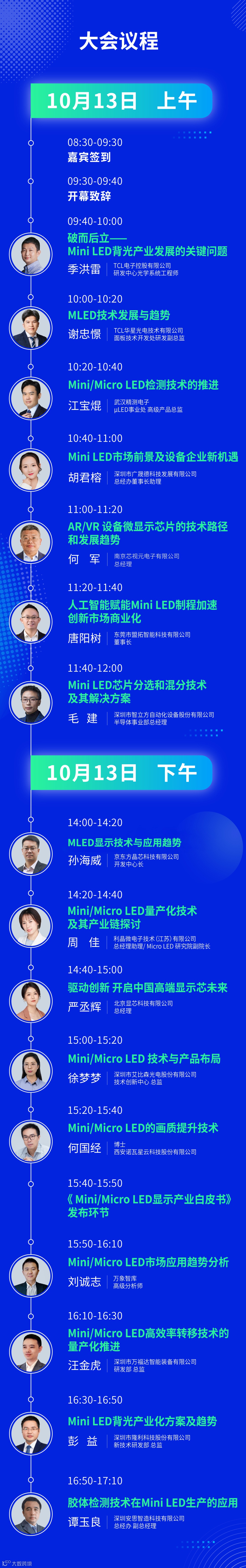 同期大会将围绕白皮书核心内容进行解读,从Mini LED背光以及Mini/Micro LED直显产品政策、投融资、市场、品牌策略以及核心技术或核心设备出发,阐述Mini LED背光以及Mini/Micro LED直显产品技术目前在产业应用的状况。点击图片了解更多。