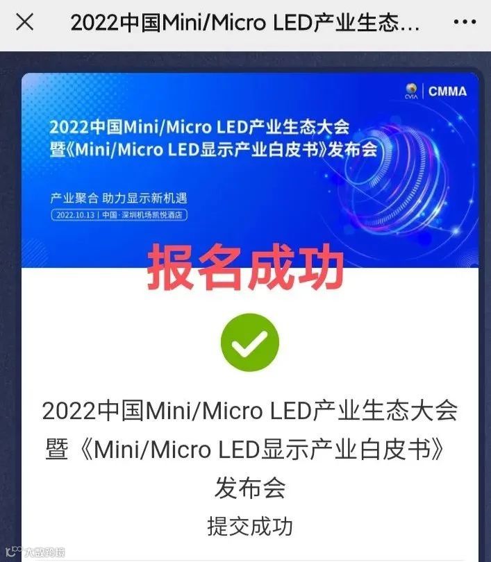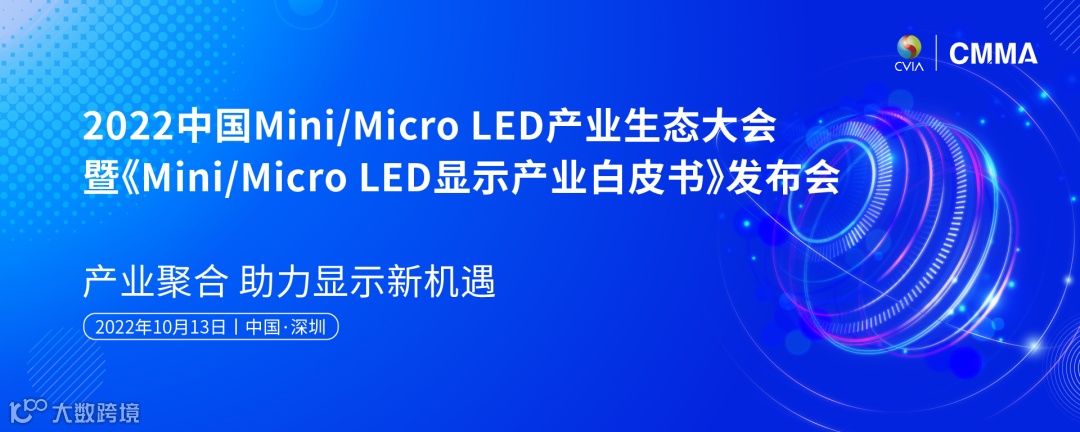 由中国电子视像行业协会Mini/Micro LED显示产业分会(CMMA)主办的“2022中国Mini/Micro LED产业生态大会”将于10月13日在深圳同期召开,大会以“产业聚合 助力显示新机遇”为主题,聚集产业链上中下游企业参会探讨产业生态升级,构筑本土显示产业链安全,解决Mini/Micro LED关键技术瓶颈,扩大量产化需求等热点话题,助力我国新型显示技术发展。
